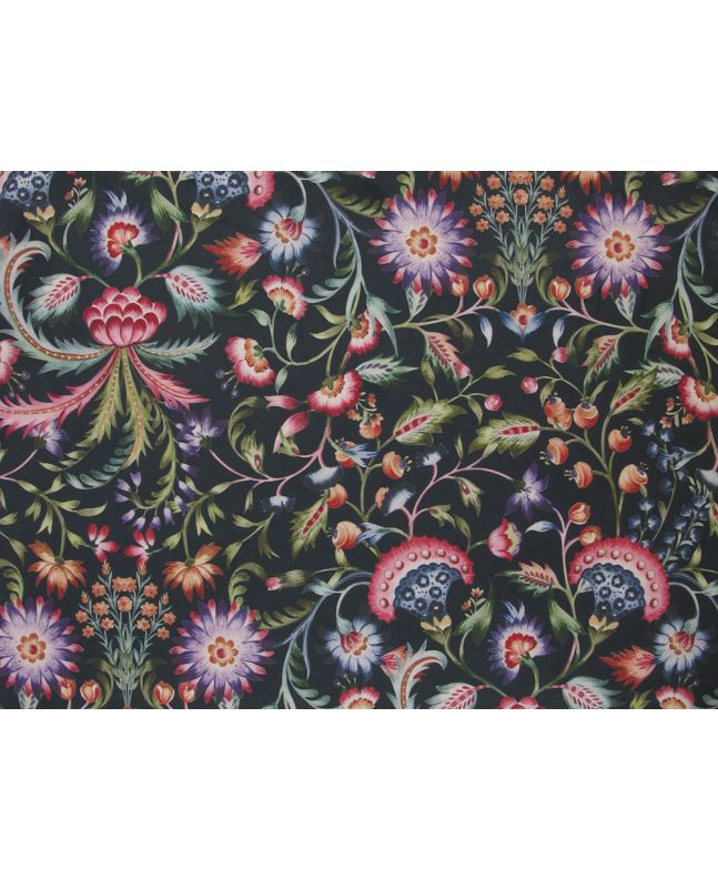 Digitally printed, soft and durable velvet fabric with a plush finish. 50,000 Rubs. Dry Clean Only.